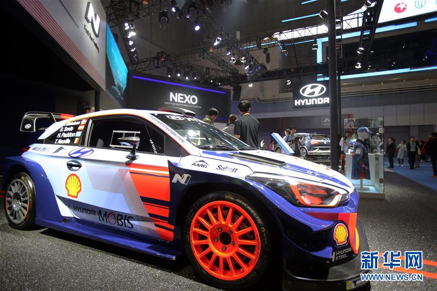 這是11月7日在現(xiàn)代展位拍攝的i20 WRC賽車。新華社記者 張譽東 攝