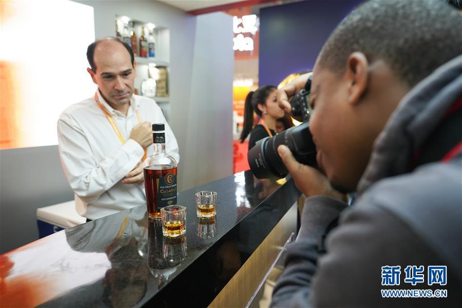 11月7日,在委內(nèi)瑞拉展區(qū),一名參觀者拍攝當(dāng)?shù)厣a(chǎn)的朗姆酒。 中國(guó)國(guó)際進(jìn)口博覽會(huì)11月5日在上海開幕。國(guó)家貿(mào)易投資綜合展(國(guó)家展)是中國(guó)國(guó)際進(jìn)口博覽會(huì)的重要內(nèi)容,共有82個(gè)國(guó)家、3個(gè)國(guó)際組織設(shè)立71個(gè)展臺(tái)。 新華社記者 王天聰 攝