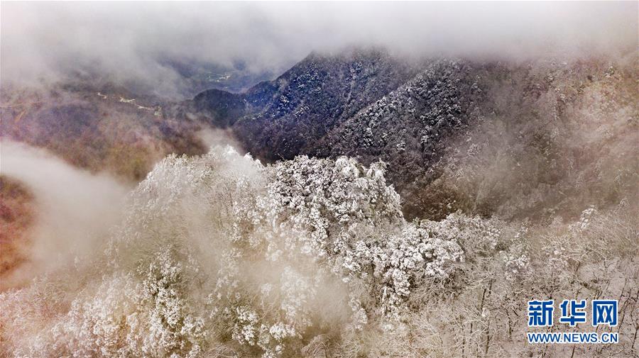 11月5日無(wú)人機(jī)拍攝的陜西省漢中市佛坪縣涼風(fēng)埡景區(qū)雪景。 新華社記者陶明攝