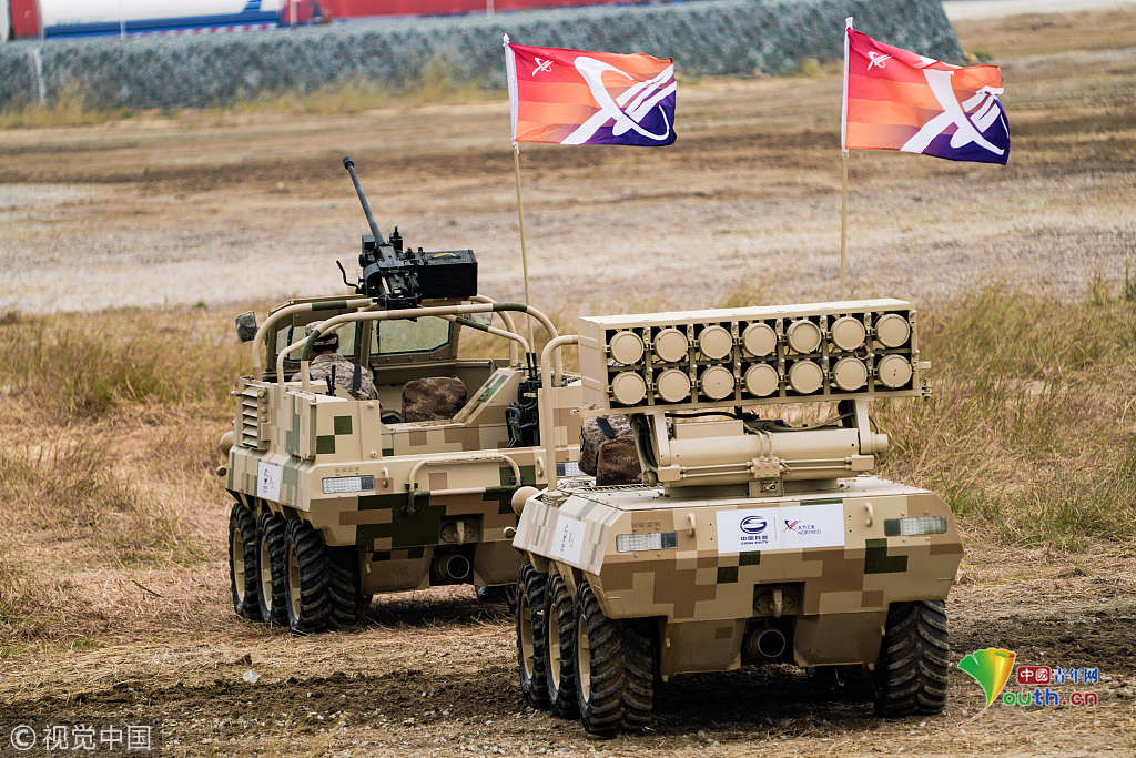 2018年11月8日,廣東珠海航展上,中國兵器集團(tuán)等組織地面的輪式即履帶式的武器裝備,進(jìn)行地面多種項(xiàng)目動(dòng)態(tài)展示。視覺中國