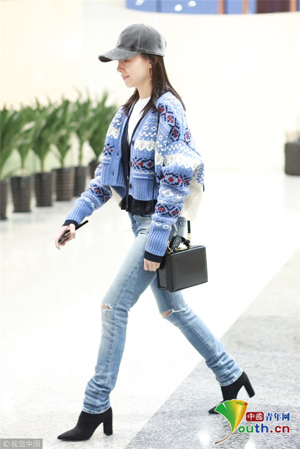 董潔素面朝天現(xiàn)身機場