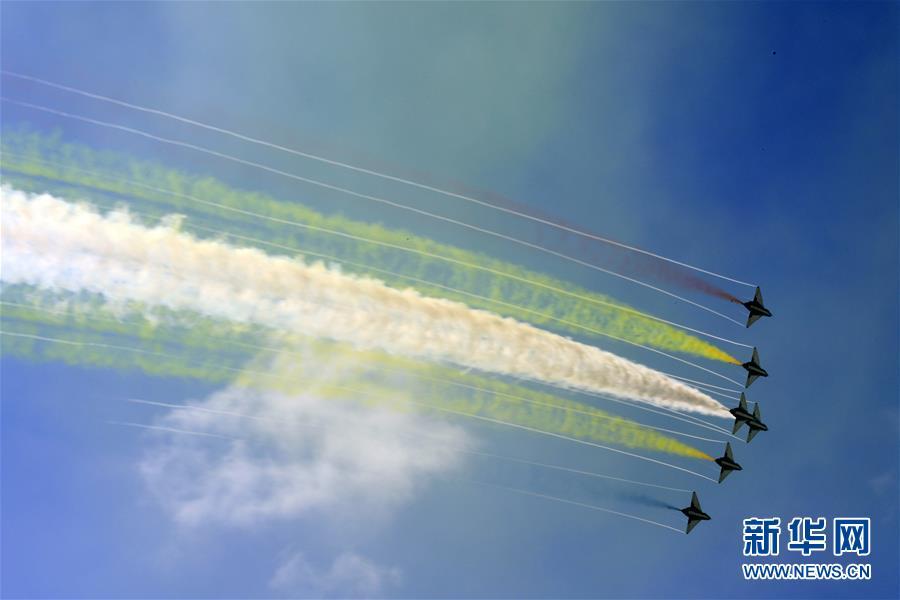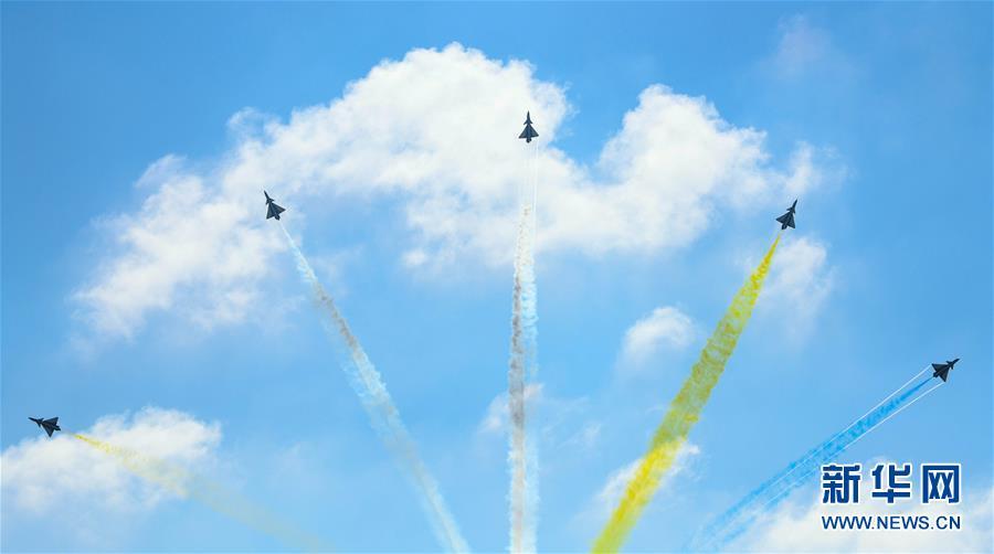 11月6日,中國空軍八一飛行表演隊在航展現(xiàn)場進行飛行表演。當日,第十二屆中國國際航空航天博覽會在珠海開幕。新華社記者鄧華攝