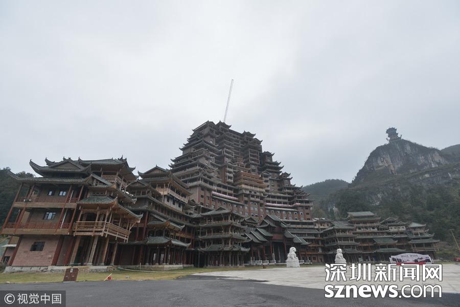 深圳新網(wǎng)網(wǎng)訊 始建于2016年9月的貴州省獨(dú)山縣水司樓已進(jìn)入工程收尾階段。雄偉壯麗造型別致的水司樓,是集會展博覽、酒店住宿、游覽觀光等于一體的大型綜合體。除具有水族特色元素外,該建筑還融合了苗族、布依族特色,是獨(dú)山縣凈心谷景區(qū)最具標(biāo)志性的宏大建筑。該樓占地面積5900平方米,總建筑面積60000平方米,樓高99.9米,共24層,是世界上最高大最大最壯觀的水族建筑,被稱為“天下第一水司樓”。 水司樓是按照水族依山畔水而居的傳統(tǒng)習(xí)俗和建筑特征修建,是水族人民的文化符號和智慧的象征,背靠凈心河谷山脊,以弧形的平面布局模式,如同張開懷抱的巨人,緊擁美麗的姻脂河灣,設(shè)計(jì)巧妙,工藝精巧。