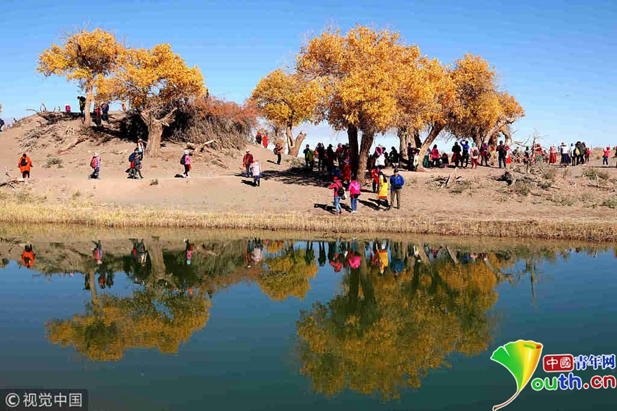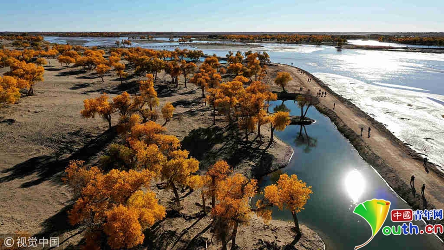 中國青年網(wǎng)北京10月9日電 2018年10月7日至8日,內(nèi)蒙古自治區(qū)阿拉善盟額濟納旗,地處巴丹吉林沙漠。額濟納河兩岸壯觀的胡楊林堪稱大漠的一顆綠色明珠,每年深秋時節(jié)的第一場秋霜過后,大片的胡楊樹葉由綠變黃,一眼望去,陽光下金色的樹葉襯著湛藍的天空于風(fēng)中婆娑起舞,鮮明的影調(diào),亮麗的色彩,令人流連忘返。