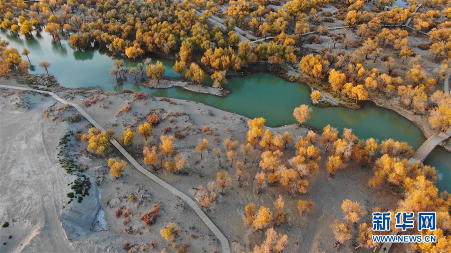 10月中旬以來,新疆天山以南的塔里木河流域胡楊葉片由綠變黃,如同披上了金色外套。 2000年起,塔里木河19次向下游生態(tài)輸水,累計下泄生態(tài)水76.2億立方米。多年的持續(xù)輸水結(jié)束了塔里木河下游河道連續(xù)斷流30年的歷史,緩解了流域生態(tài)退化的被動局面,塔里木河下游動植物物種顯著增加、水環(huán)境得到有效改善。