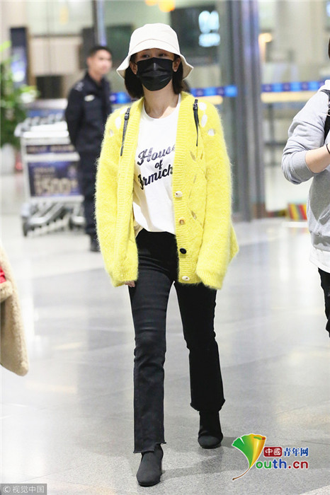 日前,楊紫現(xiàn)身長沙黃花機場,她頭戴漁夫帽的她口罩遮面,身著鮮黃針織衫相當搶眼,一路獲粉絲跟拍。