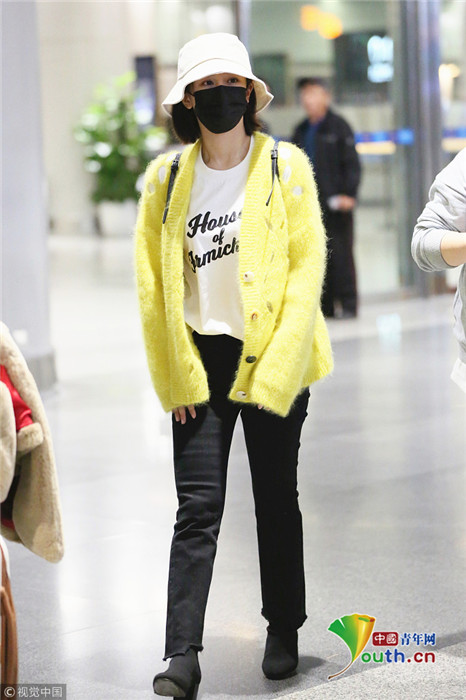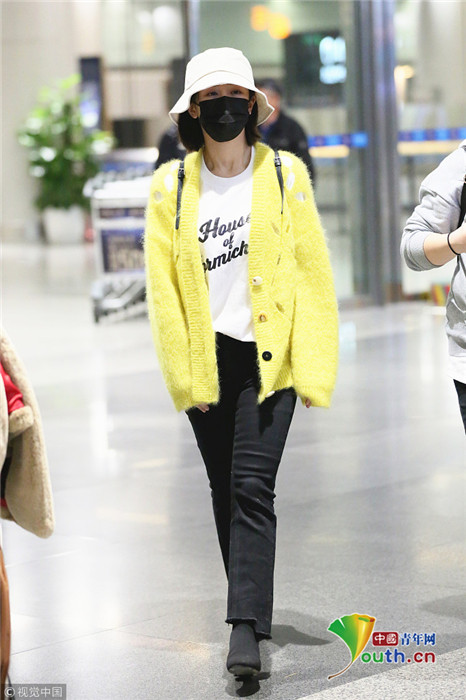 日前,楊紫現(xiàn)身長沙黃花機(jī)場,她頭戴漁夫帽的她口罩遮面,身著鮮黃針織衫相當(dāng)搶眼,一路獲粉絲跟拍。