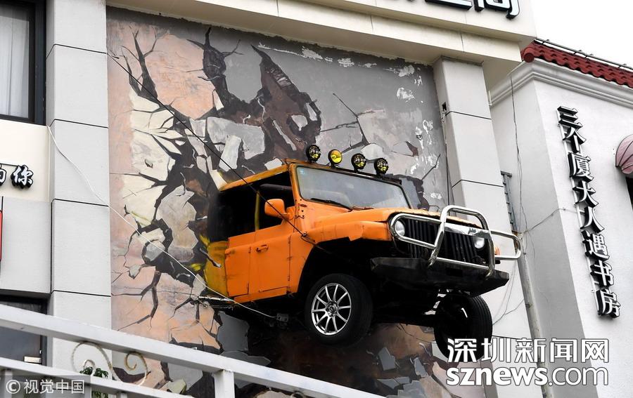 深圳新聞網(wǎng)訊 2018年11月13日,在廈門(mén)市區(qū)環(huán)島路上,一輛裝飾在建筑墻面上的汽車,結(jié)合3D圖案讓人感覺(jué)汽車“破”墻而出,創(chuàng)意十足。