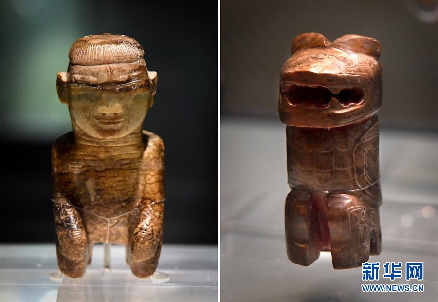在安陽博物館展出的婦好墓出土文物(拼版照片,10月12日攝)。目前,“鳳歸大邑商——殷墟婦好文物安陽故里展”正在安陽博物館展出,共展出文物474件。1976年被考古學家發(fā)現(xiàn)的婦好墓,是世界文化遺產、中國商代后期都城遺址——殷墟唯一保存完整的商代王室墓葬。新華社記者李安攝