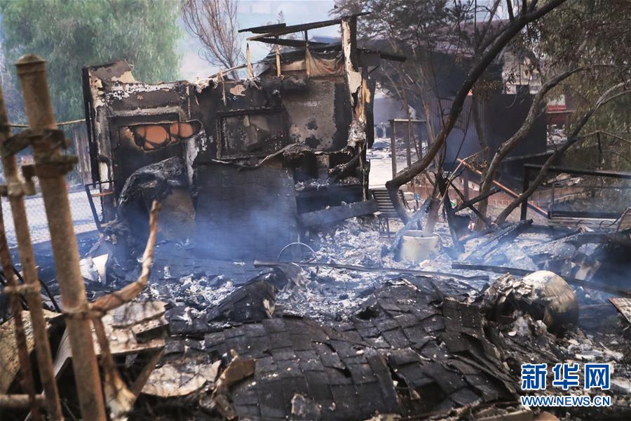這是11月10日在美國(guó)加利福尼亞州馬里布市拍攝的一處被燒毀的廢墟。連日來(lái),美國(guó)加利福尼亞州野火肆虐。 新華社記者李穎攝