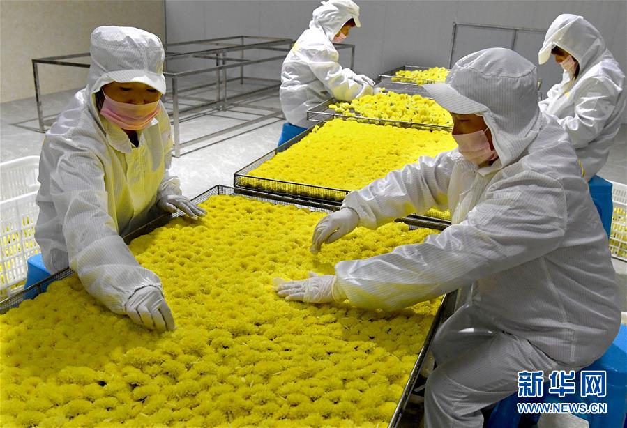 11月14日,河南省內(nèi)鄉(xiāng)縣乍曲鎮(zhèn)水溝村一家菊花茶加工企業(yè)工人在挑揀菊花。 近年來,河南省內(nèi)鄉(xiāng)縣依托資源優(yōu)勢(shì),把發(fā)展特色農(nóng)業(yè)作為精準(zhǔn)扶貧的重要舉措,采取“公司+合作社+農(nóng)戶”的方式,招引農(nóng)業(yè)龍頭企業(yè)發(fā)展菊花種植產(chǎn)業(yè),把菊花加工成茶飲、藥材等高附加值產(chǎn)品,累計(jì)帶動(dòng)150余戶貧困戶就業(yè)增收。 新華社記者 李安 攝