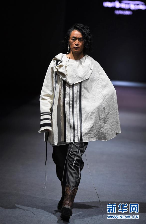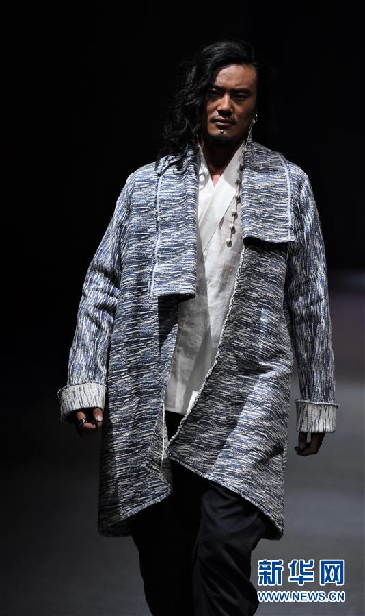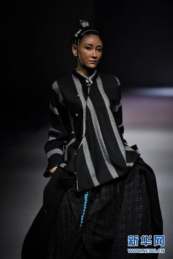 模特在AJ-NAMO藏裝秀上展示藏族設(shè)計(jì)師阿佳娜姆設(shè)計(jì)的時裝(11月18日攝)。