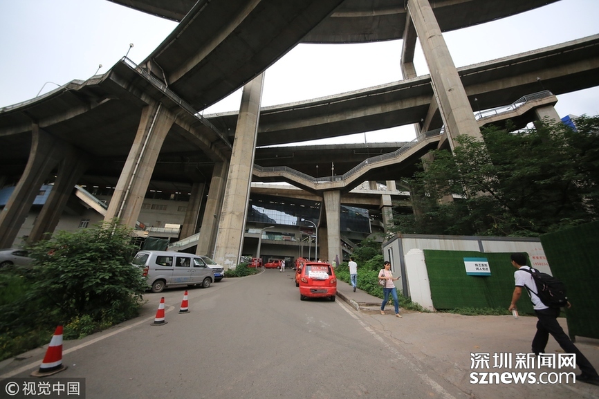 2018年5月29日,重慶,魔幻重慶又雙叒叕放大招!還有一個(gè)獨(dú)特的亮點(diǎn),重慶軌道交通3號(hào)線銅元局站,出口由一段長(zhǎng)梯銜接上方立交橋和下方的路面,與全國(guó)最高城市立交橋蘇家壩立交組成了獨(dú)特風(fēng)景,許多游客專門趕來(lái)拍照。