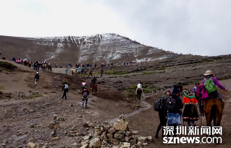 深圳新聞網(wǎng)訊 彩虹山被當(dāng)?shù)厝朔Q為維昆尼卡。深藏于秘魯庫(kù)斯科古城附近的安第斯山脈之中,多年來(lái)它一直隱藏在冰雪之下,據(jù)說(shuō)是因?yàn)闇厥倚?yīng),雪線升高露出真容,才于2016年被發(fā)現(xiàn),并迅速成為世界知名景點(diǎn)。這里可以觀賞到的還有冰川、高山草甸、羊駝以及當(dāng)?shù)厣贁?shù)民族的風(fēng)情。李仁奇攝