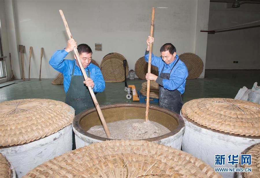 11月21日,工作人員在紹興女兒紅釀酒有限公司釀酒廠房用竹耙攪動糯米,使其與麥曲和酒母充分混合。 浙江紹興一帶有“生女釀好酒、婚嫁宴賓客”的習(xí)俗,所釀之酒稱“女兒紅”。在紹興市上虞區(qū)東關(guān)街道,一家釀酒廠仍保留著傳統(tǒng)的黃酒生產(chǎn)線,恪守著近20道釀造工序,延續(xù)著傳統(tǒng)黃酒的釀制技藝和生女必釀“女兒紅”的文化習(xí)俗。 黃酒是中國最古老的酒種之一,傳統(tǒng)黃酒僅在冬季取鑒湖水和糯米釀制,所得之酒澄澈馥郁。 新華社記者翁忻旸攝