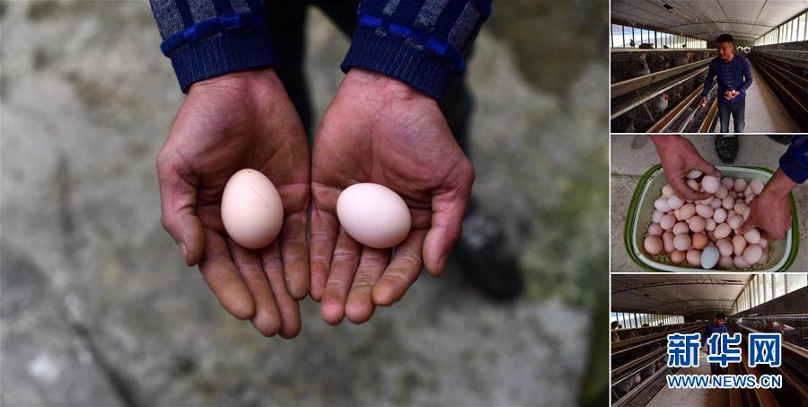 拼版照片:左圖為貧困戶李先強(qiáng)手捧養(yǎng)殖合作社生產(chǎn)的雞蛋(11月19日攝);右圖為李先強(qiáng)在雞舍里撿雞蛋(照片均攝于11月19日)。李先強(qiáng)是融水苗族自治縣香粉鄉(xiāng)香粉村的貧困戶,從2016年開始,他和15個(gè)貧困戶一起發(fā)展土雞養(yǎng)殖。目前合作社養(yǎng)有3000多只雞,年產(chǎn)雞蛋1萬多斤。 廣西融水苗族自治縣是國家扶貧工作重點(diǎn)縣,全縣“九山半水半分田”,生活生產(chǎn)環(huán)境較為惡劣,脫貧攻堅(jiān)任務(wù)艱巨,目前還有7.68萬貧困人口。面對(duì)經(jīng)濟(jì)發(fā)展落后、貧困面廣且程度深的現(xiàn)狀,當(dāng)?shù)匕衙撠毠?jiān)與創(chuàng)新產(chǎn)業(yè)扶持相結(jié)合,依托生態(tài)資源優(yōu)勢(shì),實(shí)施“特色產(chǎn)業(yè)富民行動(dòng)”,通過發(fā)展特色民族旅游、林下經(jīng)濟(jì)和特色養(yǎng)殖業(yè)等扶貧產(chǎn)業(yè),帶動(dòng)貧困群眾依靠勤勞的雙手,拔窮根摘窮帽,實(shí)現(xiàn)脫貧致富。據(jù)了解,目前全縣貧困戶參與特色產(chǎn)業(yè)發(fā)展的有2.9萬戶,扶貧產(chǎn)業(yè)覆蓋率達(dá)95%。 新華社記者 黃孝邦 攝