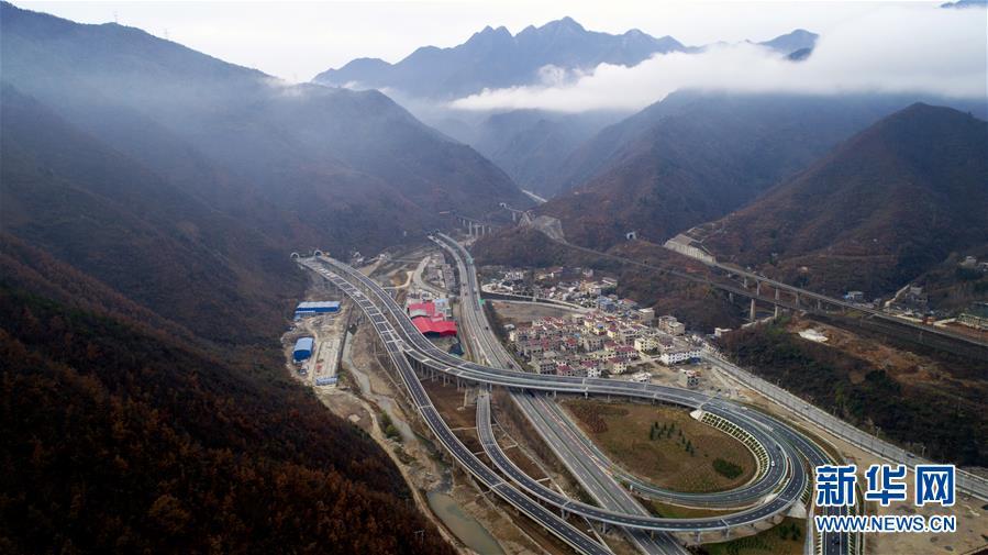 11月20日拍攝的水陽(yáng)高速公路與包茂高速公路相接的樞紐互通式立交(無(wú)人機(jī)拍攝)。 近日,記者從陜西省交通建設(shè)集團(tuán)公司了解到,陜西柞水至山陽(yáng)高速公路已全線貫通即將通車。據(jù)介紹,(柞)水(山)陽(yáng)高速公路全長(zhǎng)78.8公里,開通后將實(shí)現(xiàn)包茂高速、福銀高速在陜南商洛地區(qū)的連接,開辟出秦嶺南麓的一條橫向高速大通道,對(duì)完善陜西高速公路路網(wǎng)結(jié)構(gòu)、促進(jìn)陜南區(qū)域經(jīng)濟(jì)發(fā)展、加快山區(qū)群眾脫貧致富具有重要意義。 新華社記者劉瀟攝