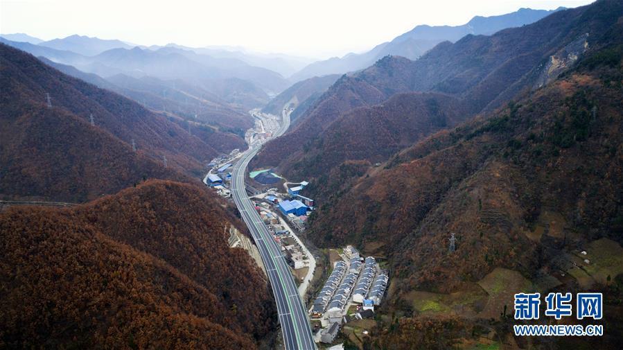 11月20日拍攝的水陽高速公路與包茂高速公路相接的樞紐互通式立交(無人機(jī)拍攝)。 近日,記者從陜西省交通建設(shè)集團(tuán)公司了解到,陜西柞水至山陽高速公路已全線貫通即將通車。據(jù)介紹,(柞)水(山)陽高速公路全長78.8公里,開通后將實(shí)現(xiàn)包茂高速、福銀高速在陜南商洛地區(qū)的連接,開辟出秦嶺南麓的一條橫向高速大通道,對(duì)完善陜西高速公路路網(wǎng)結(jié)構(gòu)、促進(jìn)陜南區(qū)域經(jīng)濟(jì)發(fā)展、加快山區(qū)群眾脫貧致富具有重要意義。 新華社記者劉瀟攝