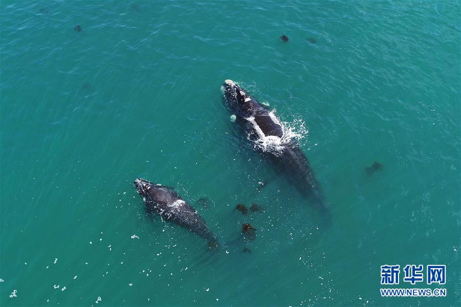 9月30日,在南非赫曼紐斯小鎮(zhèn)附近海面上,南露脊鯨在海岸邊暢游。9月29日,位于開普敦以東約115公里的赫曼紐斯小鎮(zhèn)迎來(lái)2018年的鯨魚節(jié),來(lái)自世界各地的游客可乘船出海觀鯨,也可在岸邊等待鯨魚的到來(lái)。新華社記者陳誠(chéng)攝
