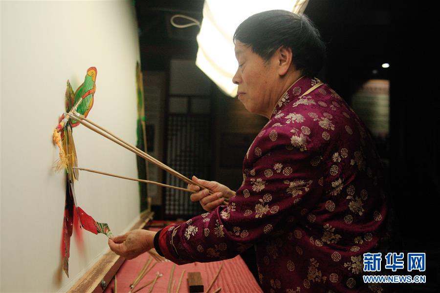 11月20日,在浙江海寧市南關(guān)廂歷史街區(qū),張坤榮在表演皮影戲。新華社記者朱唯希攝