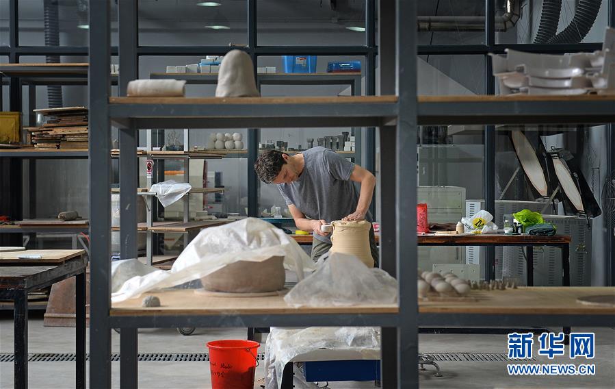 在江西景德鎮(zhèn)陶溪川文創(chuàng)街區(qū)的國(guó)際工作室,一位來(lái)自美國(guó)的藝術(shù)家在制作陶瓷藝術(shù)品(2016年10月20日攝)。 新華社記者 萬(wàn)象 攝