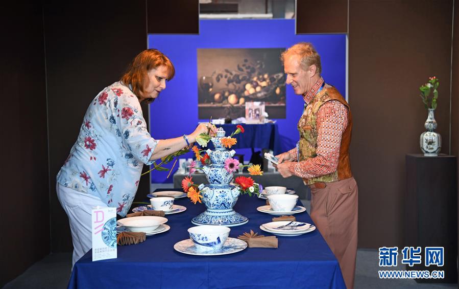 在中國(guó)景德鎮(zhèn)國(guó)際陶瓷博覽會(huì)的現(xiàn)場(chǎng),來(lái)自荷蘭的參展商正在布置展臺(tái)(10月18日攝)。 新華社記者 萬(wàn)象 攝