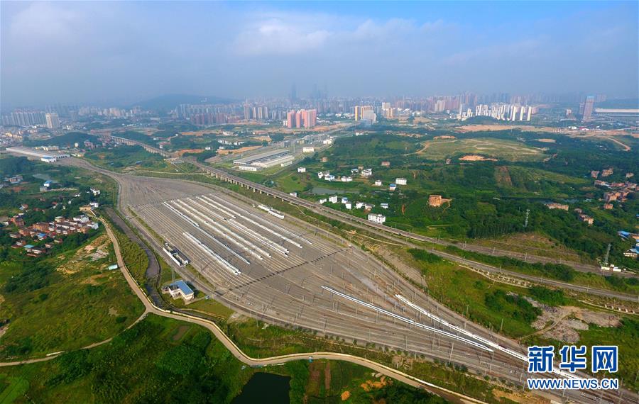 這是廣西南寧動(dòng)車所內(nèi)準(zhǔn)備發(fā)往各地的動(dòng)車組列車(7月1日無(wú)人機(jī)拍攝)。 廣西壯族自治區(qū)成立60年來(lái),鐵路建設(shè)發(fā)生翻天覆地的變化。來(lái)自中國(guó)鐵路南寧局集團(tuán)有限公司的數(shù)據(jù)顯示,1958年廣西鐵路總里程為1346.3公里,如今廣西鐵路總里程達(dá)5191公里。廣西與周邊相鄰省份間實(shí)現(xiàn)動(dòng)車“公交化”開(kāi)行。此外,北部灣港—重慶班列、東盟海產(chǎn)品冷鏈班列、“百色一號(hào)”果蔬專列等的開(kāi)通和運(yùn)營(yíng),強(qiáng)化了鐵路供給的針對(duì)性和有效性。鐵路成為助推廣西經(jīng)濟(jì)社會(huì)快速發(fā)展的“大動(dòng)脈”。 新華社記者黃孝邦攝