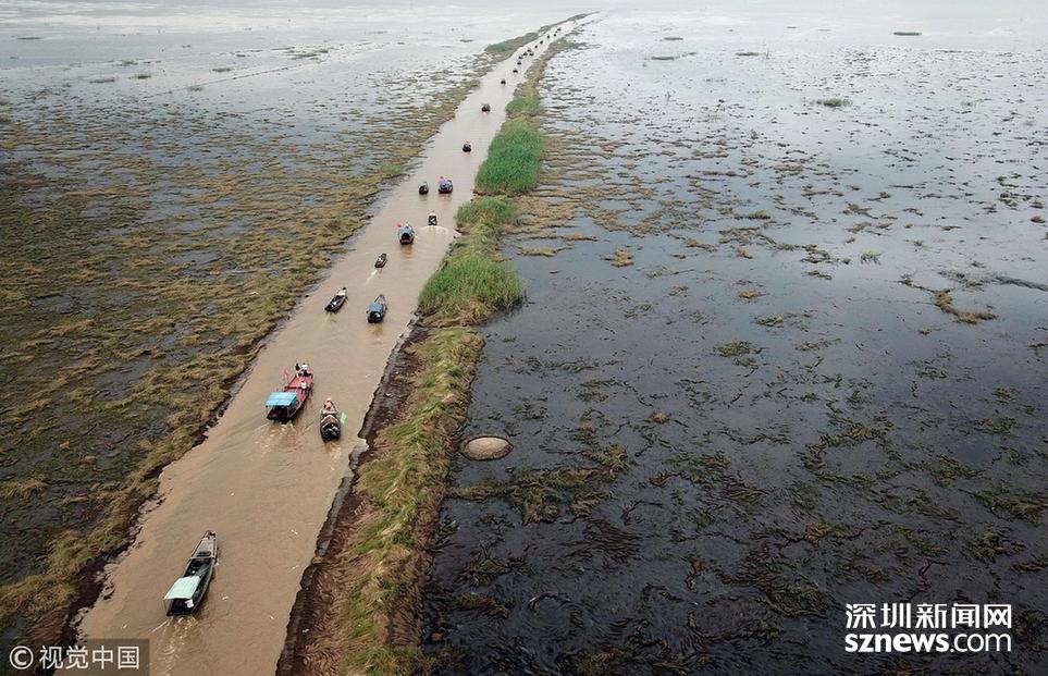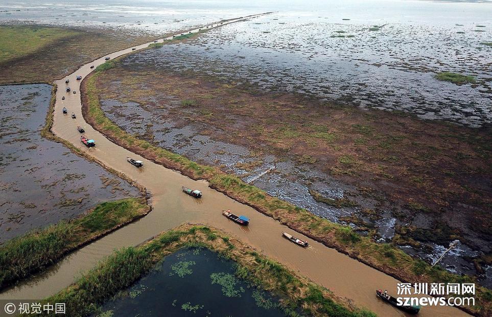 6月20日,鄱陽湖江西省鄱陽縣水域,漁船下湖捕撈作業(yè)。為期3個月的中國最大淡水湖鄱陽湖春季禁漁期于當(dāng)日12時結(jié)束。當(dāng)日,第二屆鄱陽湖國家濕地公園開漁節(jié)在此間舉行,吸引各地游客慕名前來。中新社記者 姜濤 攝