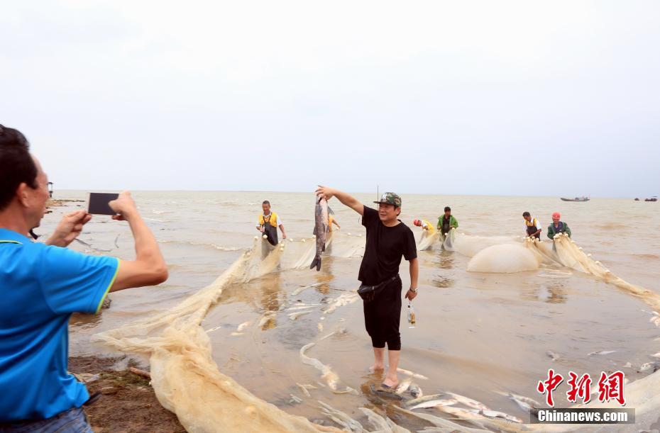 2018年6月26日,江蘇省常州市嘉澤鎮(zhèn)捕撈村的漁民組織夏季捕撈,一網(wǎng)魚達五萬余斤,以鰱魚為主,供應(yīng)市場需求。夏捕的魚價較平時有所上漲,漁民粗略估計可增收上萬余元。