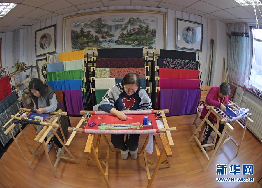 11月23日,繡娘在盛京滿繡工作室工作。新華社記者楊青攝