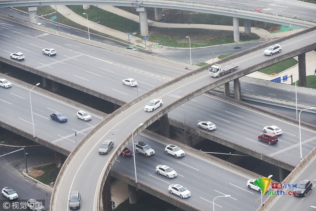 2018年11月23日,成都,俯瞰整個(gè)嬌子立交的全貌:12條匝道已經(jīng)完工,道路標(biāo)線、路面路況、指示牌都是全新的,不時(shí)有車輛在三環(huán)路和成龍路之間轉(zhuǎn)換。