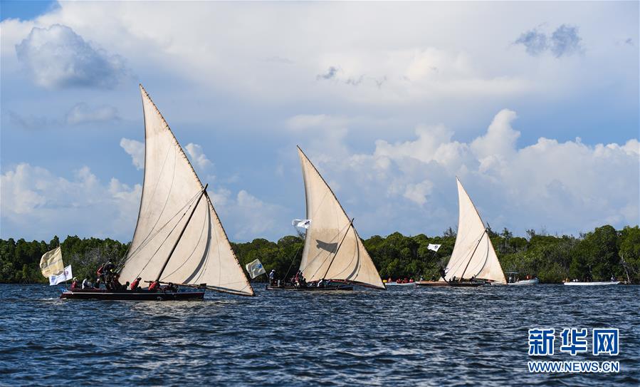 11月24日,拉穆居民在肯尼亞?wèn)|部印度洋上比賽獨(dú)桅三角帆船。這種帆船曾是東非海洋貿(mào)易的主要交通工具,拉穆本地居民至今還以能駕馭三角帆船為榮。