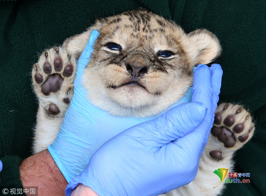 《我快要窒息了。?!?016年7月28日訊,英國(guó)斯特靈,布萊爾德拉蒙德野生動(dòng)物園四只三周大的幼獅接受首次健康檢查。