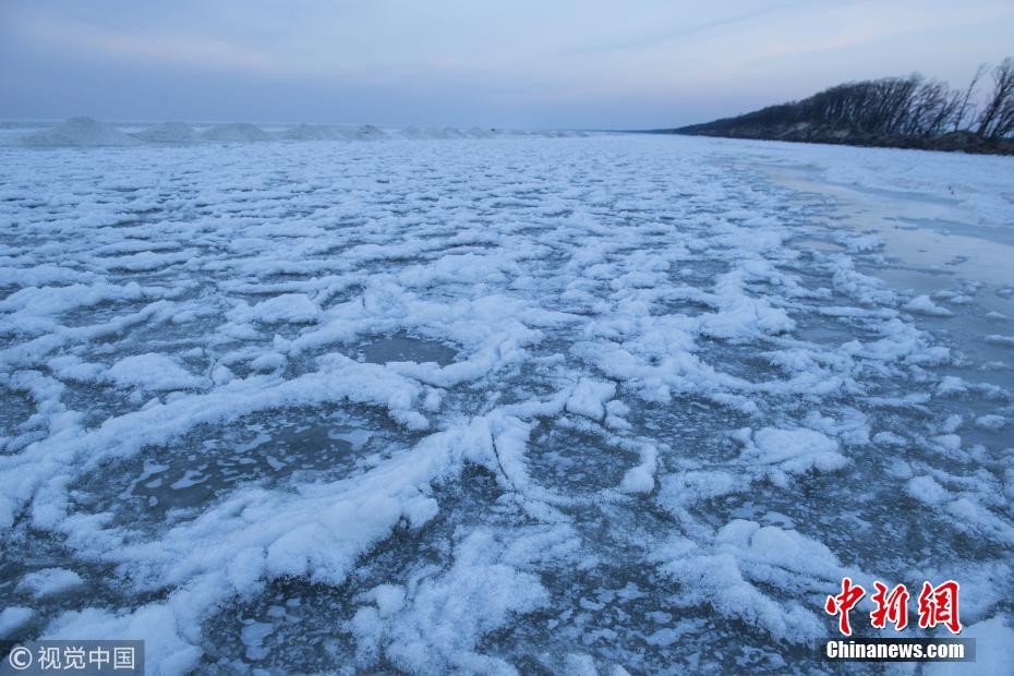 11月24日下午,攝影師在進入冬季黑龍江東南部中俄界湖興凱湖看到,浩瀚千里的湖面不再波濤洶涌,小興凱湖蔚藍猶如平鏡,大興凱湖銀白無限。走到冰封的湖面近處觀看,封凍的大湖湖面猶如浪花被凝固,千姿百態(tài)。據(jù)岸邊漁民介紹,今年大湖屬于“武封”,是由于氣溫突然下降造成的,這也是少有的現(xiàn)象,和往年的“文封”形成的大冰塊區(qū)別很大。孫長山 攝 圖片來源:視覺中國