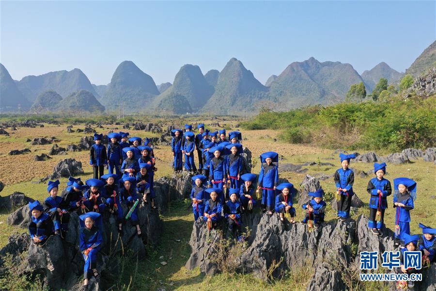 廣西百色靖西市安德鎮(zhèn)中心小學(xué)的孩子們在排練山歌(11月28日無人機(jī)拍攝)。  新華社記者 周華攝