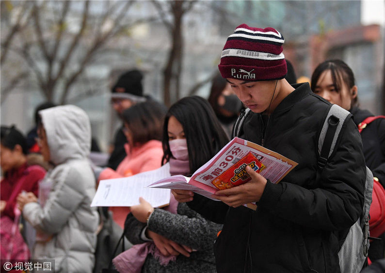 2018年12月2日,北京,在呼家樓中學(xué)考場,考生正在抓緊時間進行復(fù)習(xí)。北京青年報 郝羿/視覺中國