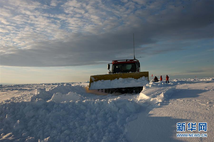修路小組成員用雪地車裝備的鏟斗推平積雪(12月1日攝)。 搭載中國(guó)第35次南極科考隊(duì)的“雪龍”號(hào)極地考察船日前到達(dá)距離中山站44公里處的陸緣冰區(qū),準(zhǔn)備迎來(lái)本次南極科考首場(chǎng)攻堅(jiān)戰(zhàn)——物資卸運(yùn)。一支探冰小組隨即展開海冰探路,以期盡快打通從“雪龍”號(hào)到中山站的冰上運(yùn)輸線,盡早啟動(dòng)冰上運(yùn)貨。 新華社記者 劉詩(shī)平 攝