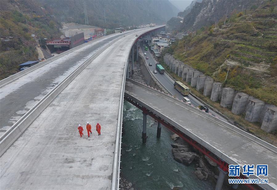 這是11月3日無人機(jī)拍攝的克枯大橋。 當(dāng)日,位于四川省阿壩藏族羌族自治州的汶(川)馬(爾康)高速的控制性工程克枯大橋合龍。 新華社記者 劉坤 攝