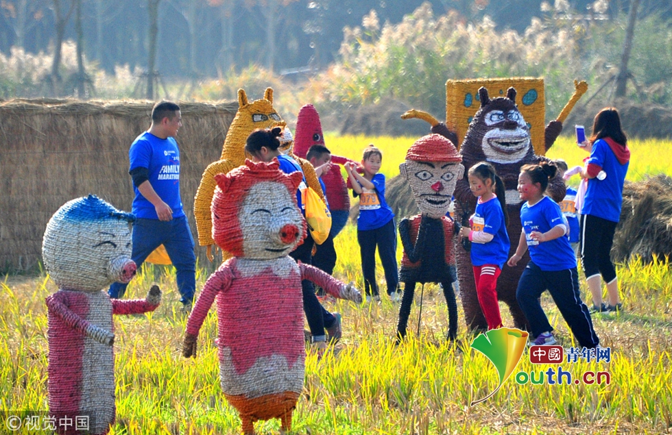 這個(gè)雙休日,公園的稻草雕塑和稻田吸引了眾多的市民游客前來(lái)打卡拍照。據(jù)了解,稻草雕塑展將一直持續(xù)到明年4至5月春播前。圖片來(lái)源視覺(jué)中國(guó)