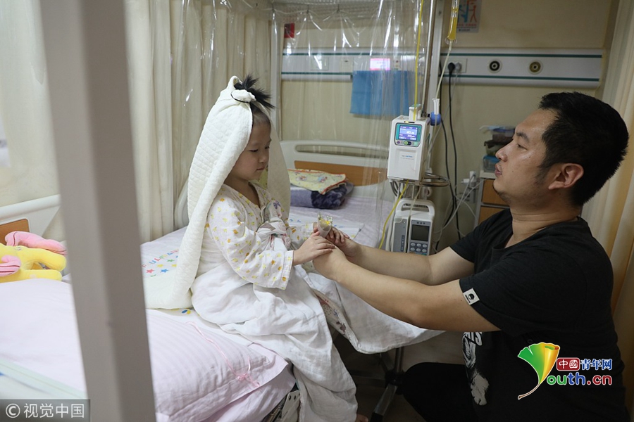 有人說,每個大病患兒都是折翼的天使。經(jīng)過兩年多的治療后,小婭馨變得越來越堅強(qiáng)懂事了,對自己的病情也有了基本清晰的認(rèn)知。11月16日,小婭馨接受化療時靜脈上被插上了長長的管子,疼的嚎啕大哭,爸爸袁東方摟著她痛哭流涕:“女兒不怕!打完針病就好了,你就能像正常人一樣上學(xué)、戀愛、結(jié)婚了!”。治療結(jié)束后,小婭馨天真無邪地說“爸爸,長大了才可以結(jié)婚,那需要好久,我害怕等不到那一天,要不現(xiàn)在咱們倆結(jié)一次婚吧!”。