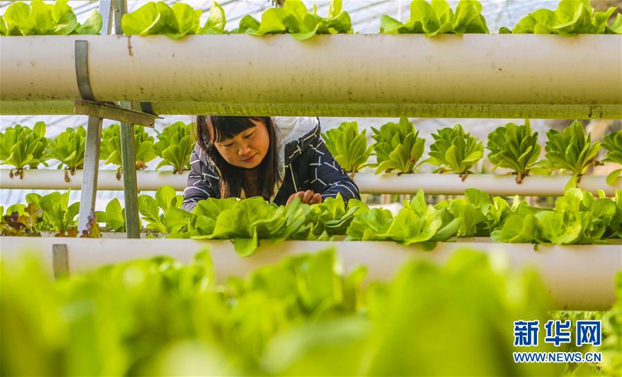 12月3日,工作人員在大廠回族自治縣一家農(nóng)業(yè)園打理無土栽培的蔬菜。