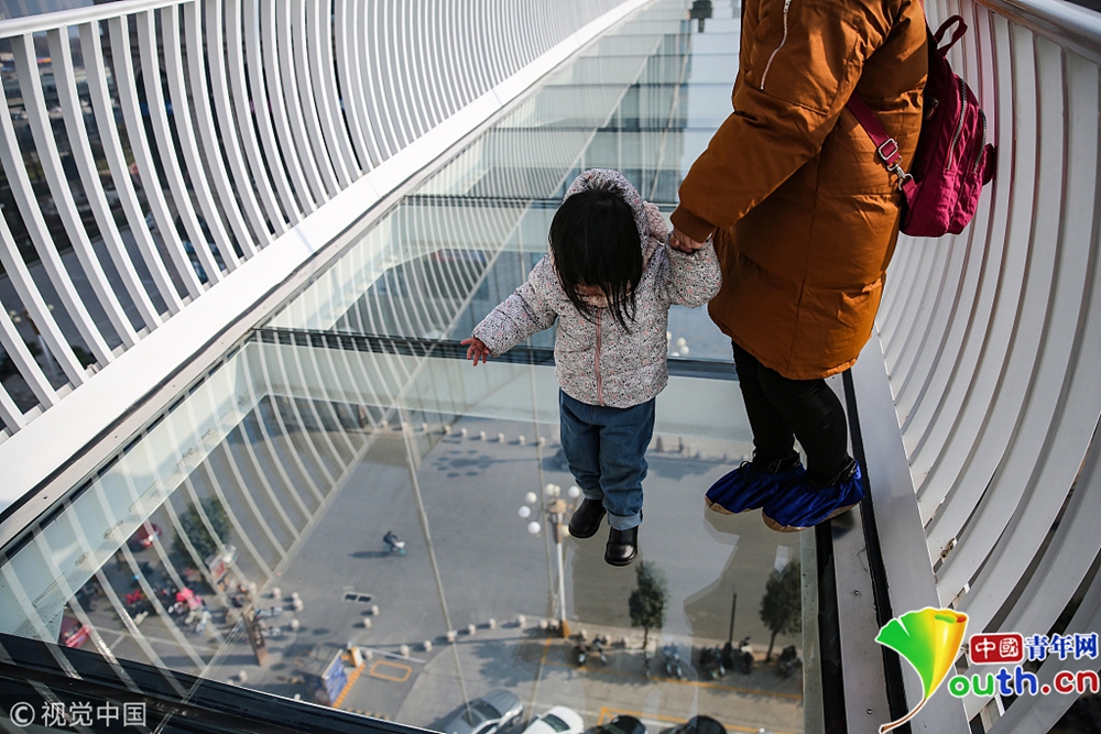 初生牛犢不怕虎,不少兒童走在玻璃吊橋上若無(wú)其事,大步流星地往前走,而其身后的家長(zhǎng)則是緊貼著一側(cè)的欄桿,雙手緊握扶手挪步前行,雙眼一直不敢往下看。全程走下了,游客的手掌布滿了冷汗。
