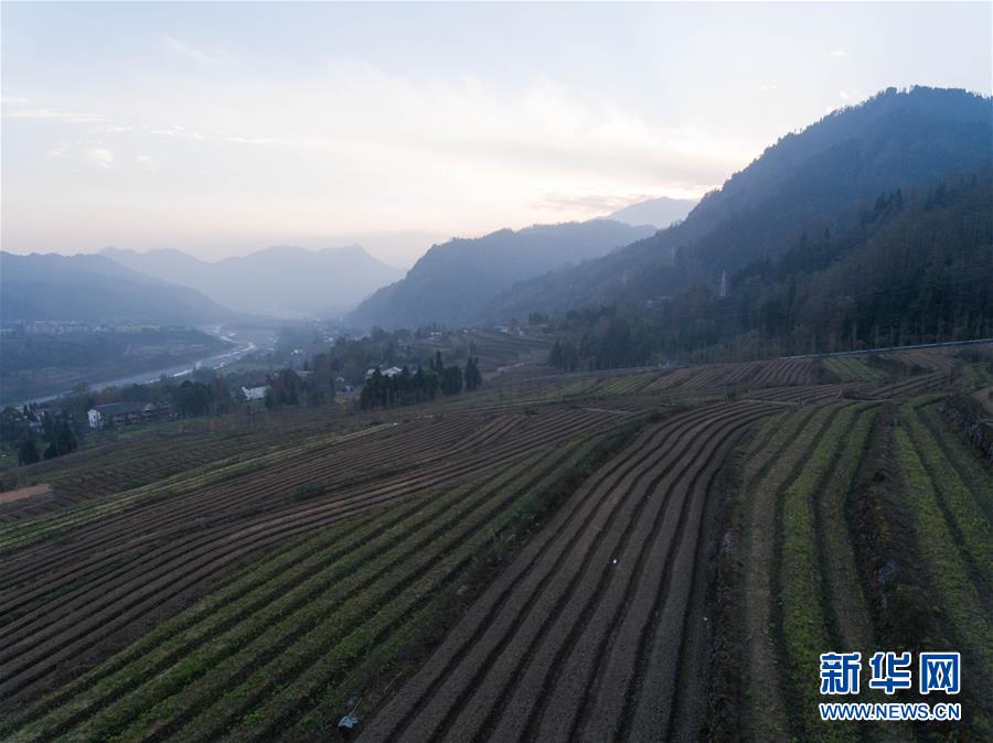 這是四川成都彭州市寶山村一角(12月3日無人機拍攝)。上世紀70年代,寶山村在大山中開出了715畝高產梯田。 新華社記者 江宏景攝