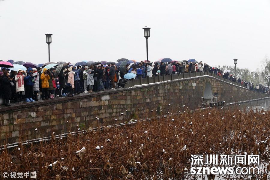游客扎堆西湖斷橋已無(wú)“殘雪” 網(wǎng)友:人太多雪沒(méi)地方站