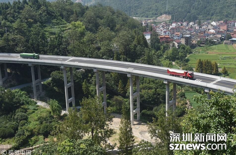 近日,連接富陽山區(qū)湖源鄉(xiāng)的橫槎大橋建成通車。昔日湖源鄉(xiāng)通往外界的是一條盤山公路,道路狹窄,極易發(fā)生交通事故。橫槎大橋全長367.4米,共18跨,橋面寬12米,橋墩高30米,相當于近10層樓高,是在險峻的山岙里建成的。大橋的通車,將徹底改變湖源鄉(xiāng)通往外界的道路,也為山區(qū)農(nóng)民拓寬了一條通往外界的致富路。
