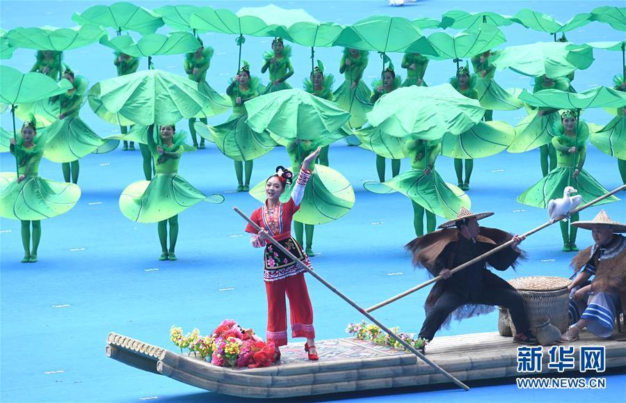 12月10日,廣西壯族自治區(qū)成立60周年慶祝大會在廣西體育中心隆重舉行。這是慶祝大會上的群眾文藝表演。 新華社記者 周華 攝