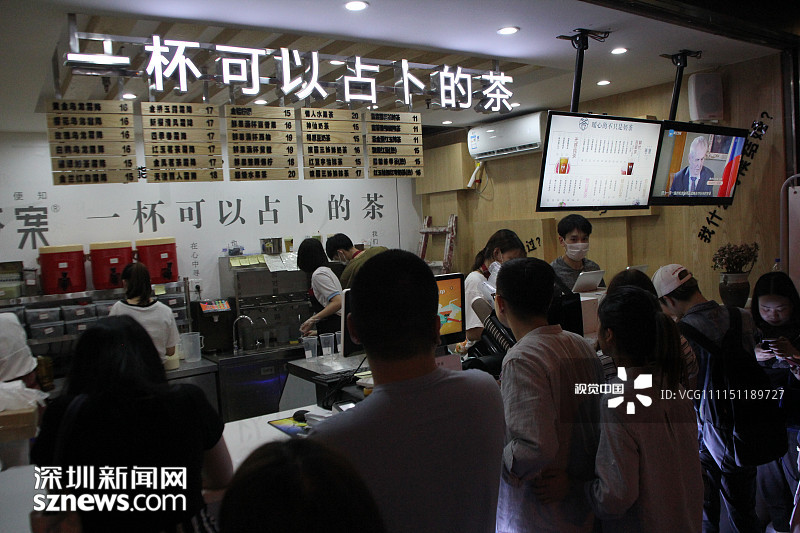 2018年4月21日,重慶,萬(wàn)達(dá)廣場(chǎng)附近有一家新開(kāi)業(yè)的網(wǎng)紅答案茶的冷飲店,這家答案茶冷飲店人氣異?;鸨T前已排起了兩條“長(zhǎng)龍”。 |