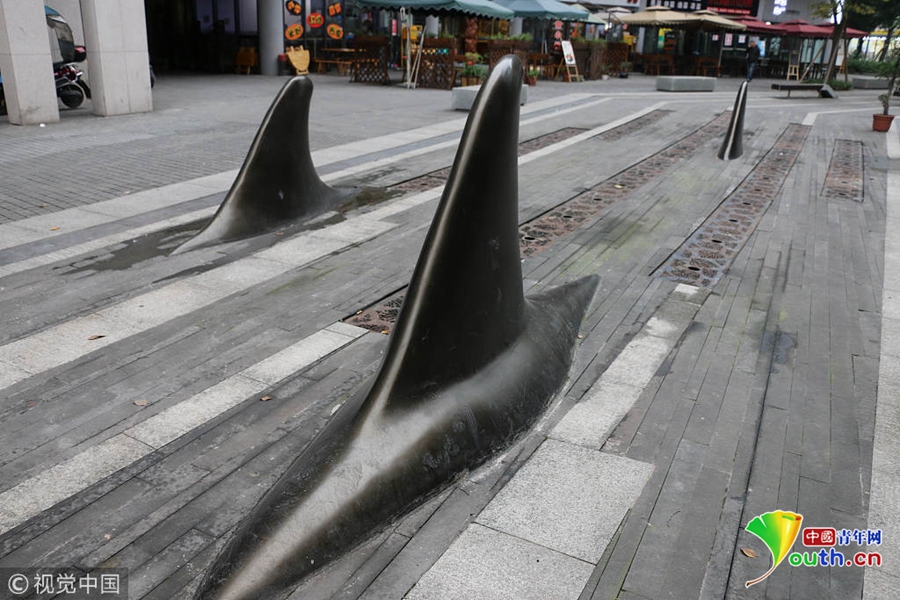 對(duì)于這種設(shè)計(jì),不少市民覺(jué)得比較精巧的,遠(yuǎn)遠(yuǎn)地望去,就好像在海面上露出魚鰭的一群鯊魚,不僅可以防止被車輛占道,而且還有點(diǎn)裝飾的效果。