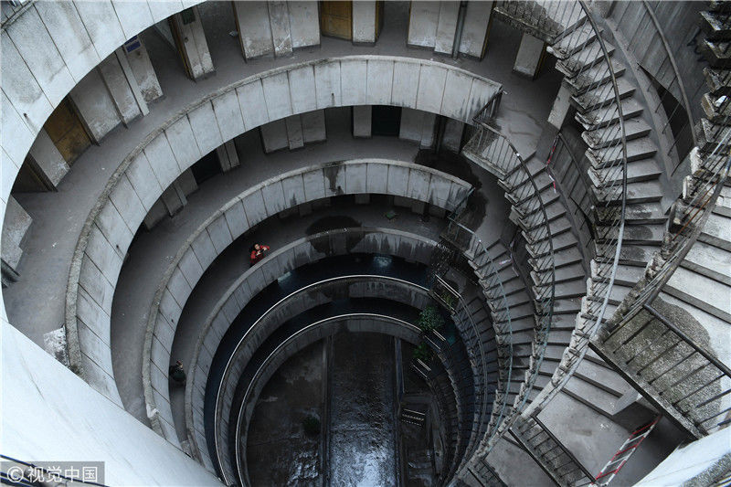 2018年12月11日,重慶紅旗河溝汽車站辦公大樓。八層的圓筒型轉(zhuǎn)轉(zhuǎn)樓,站在樓里往上望,可以看見碗口大的天空。圖片作者:尋常