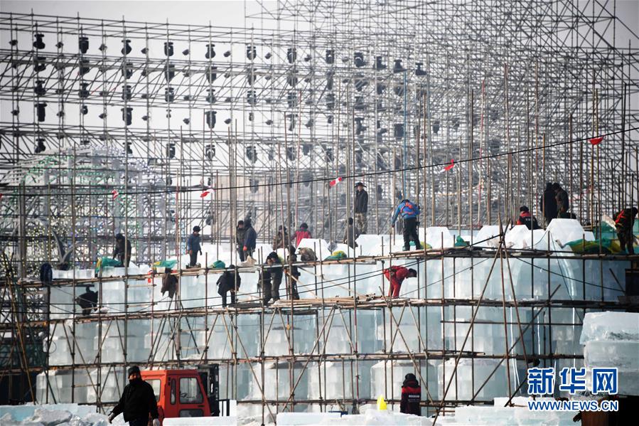 目前,以“筑夢(mèng)冰天雪地,共享金山銀山”為主題的第二十屆哈爾濱冰雪大世界正在施工,現(xiàn)場(chǎng)一片繁忙景象。 新華社記者 王建威 攝